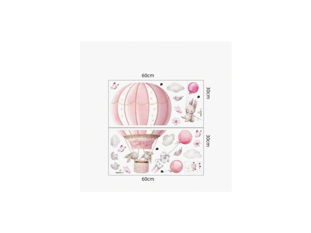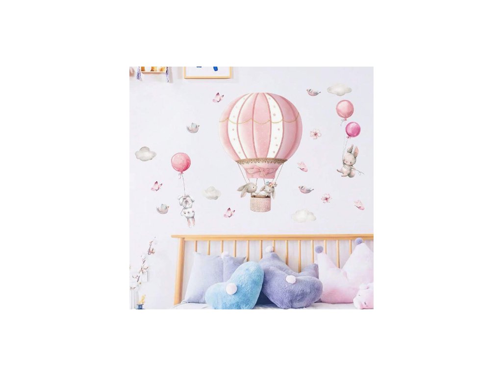 Falmatrica gyerekszobába, BRUP Home Decor - Nyuszik rózsaszín lufikkal, hőlégballonnal