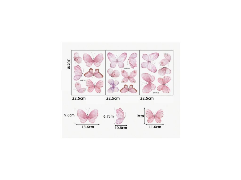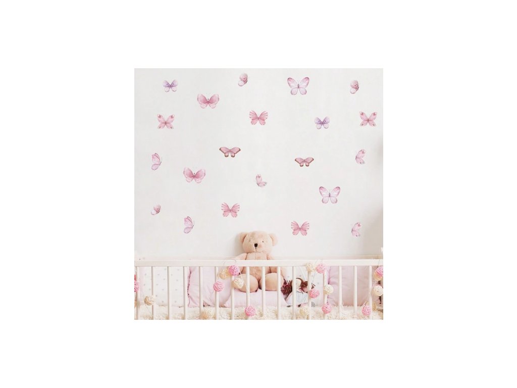 Dekoratív rózsaszínű pillangókat ábrázoló falmatrica gyerekszobába![]()