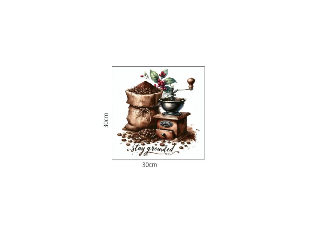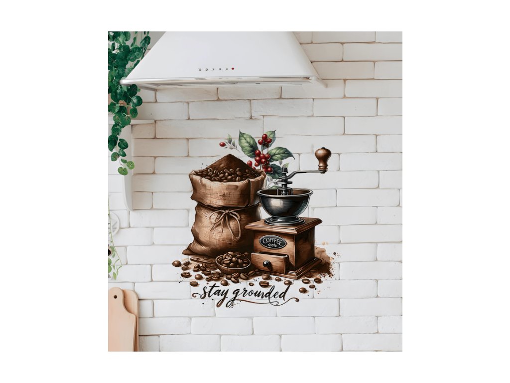 Retro hangulatú konyhai falmatrica, mely régi kézi kávédarálót ábrázol.![]()