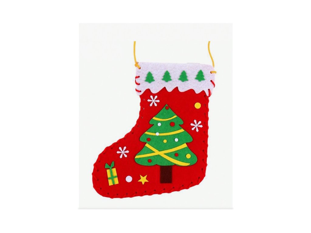 Karácsonyi dekoráció, varrókészlet gyerekeknek - Piros Mikulás zokni, karácsonyfás