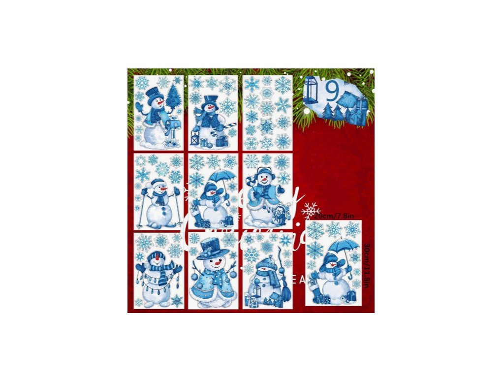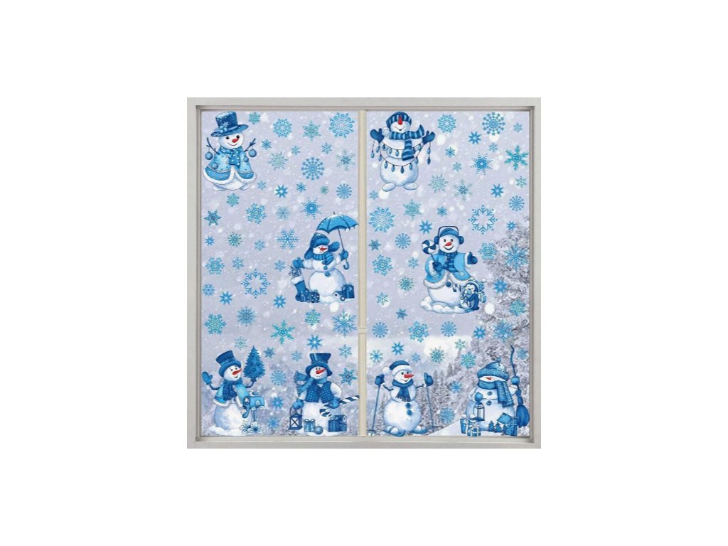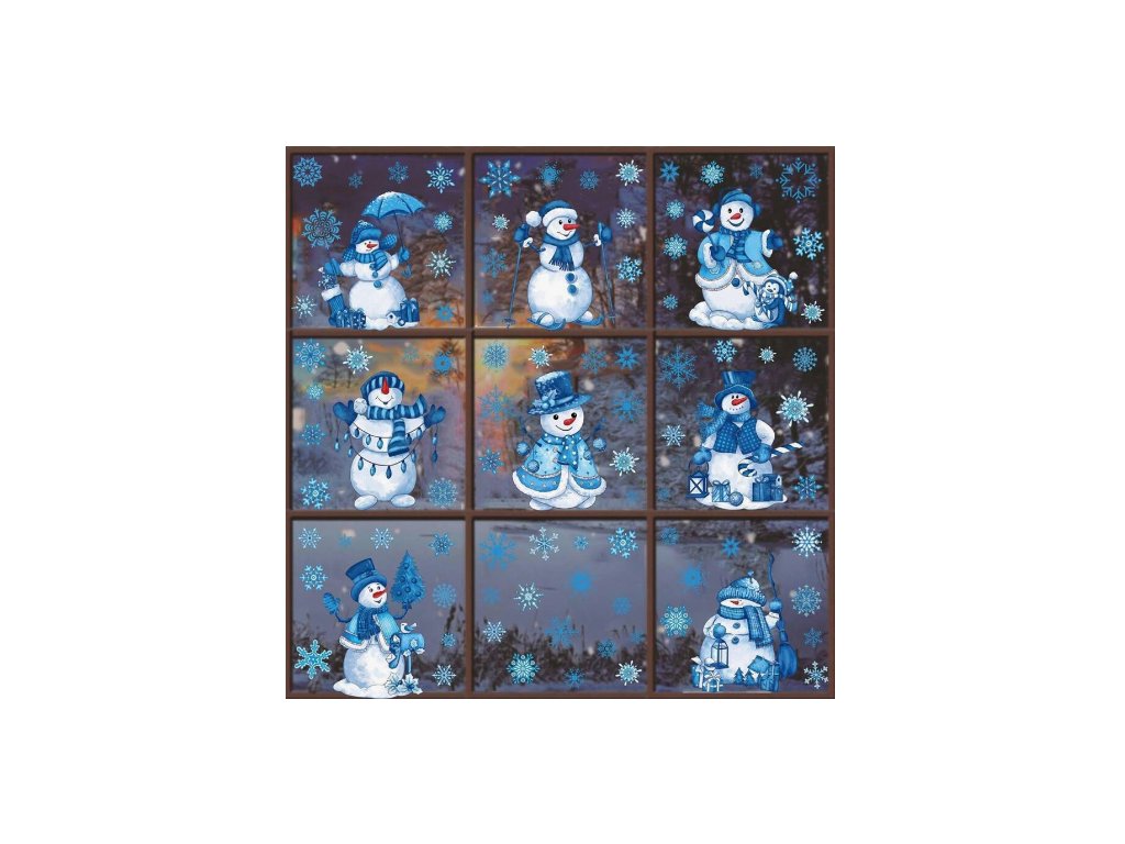 Karácsonyi sztatikus ablakmatrica, Vanco-Up - Kék hóemberek, hópelyhek