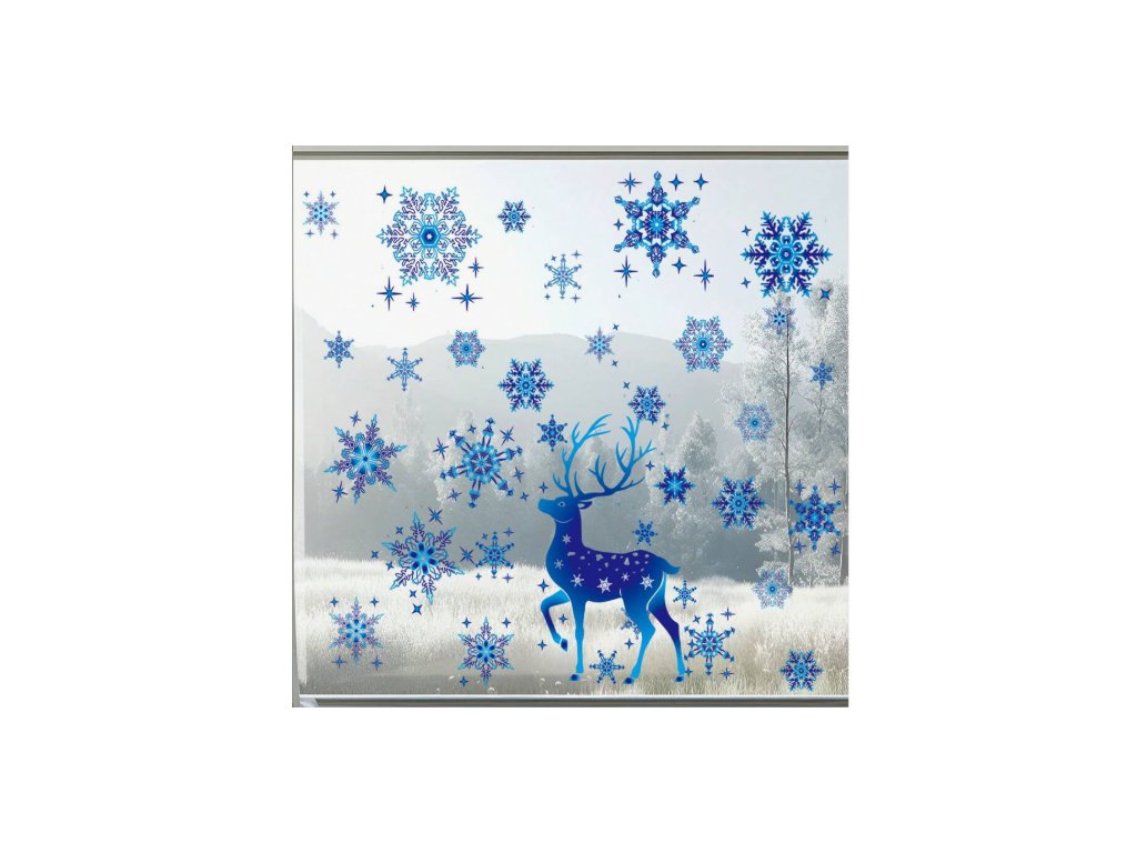 Karácsonyi sztatikus ablakmatrica, Vanco-Up - Kék rénszarvas hópelyhekkel